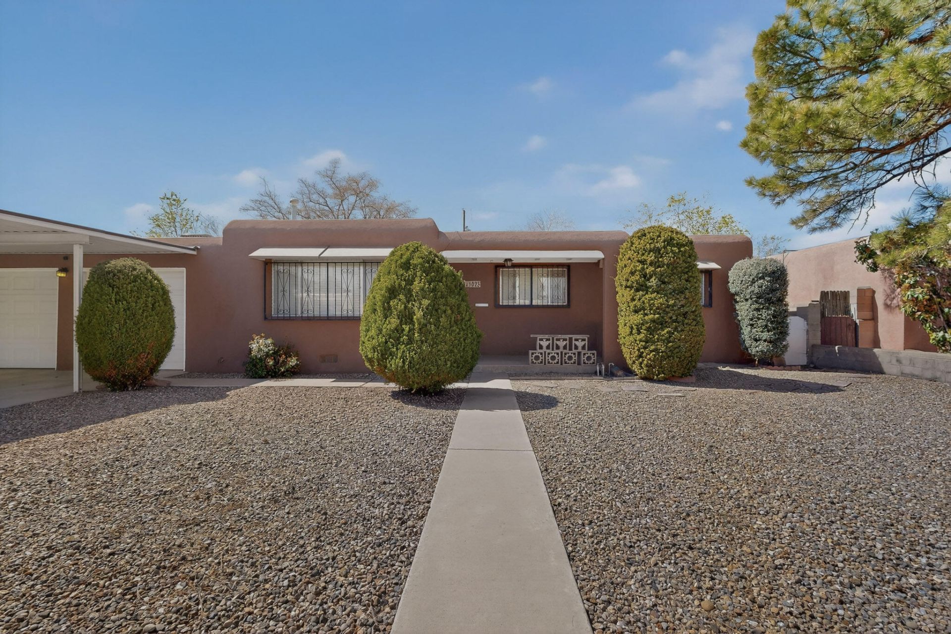 Investment opportunity near KAFB, SNL, UNM, hospitals & ABQ Sunport. Property features newer stucco, TPO roof (2020), REFRIGERATED AIR & hardwood floors (carpet only in 2nd living area) helping reduce near-term capital expenses. Flexible layout with 2 living areas, formal dining room, breakfast nook & 3 bedrooms, ideal for maximizing rental appeal. Primary bedroom with walk-in closet + ample storage throughout. Sunroom offers additional usable sq ft, great for added flexibility. Spacious backyard with access for additional parking, open & covered patios, coyote fencing & 2 sheds adds value for long-term tenants. Major updates already in place. ALL APPLIANCES STAY!