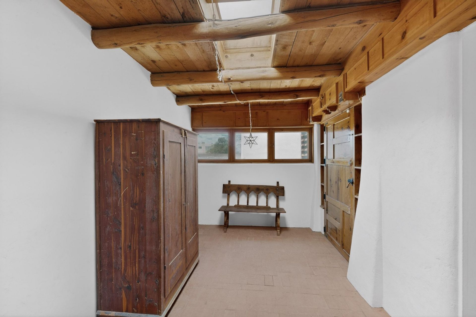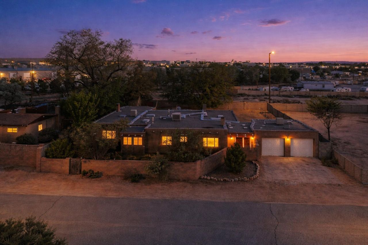 **Estate Sale 4/18/26 from 10-2pm** Distinctive Southwestern charm and architectural detail define this spacious North Valley home. Step into the expansive living and dining spaces, anchored by a classic kiva fireplace and surrounded by built-ins, bancos, and nichos that showcase authentic design. A generous den offers flexible living with a second kiva fireplace and abundant storage. Brick floors, exposed vigas, skylights, and hand-carved cabinetry and doors create warmth and texture throughout, while fresh interior paint enhances the home's inviting feel. The kitchen offers rustic charm with ample cabinetry, a built-in wine rack, and a sunny breakfast area. Set on a spacious lot with a backyard, this property blends character, space, and versatility