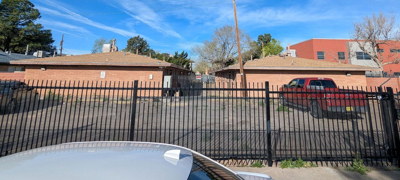 Durable brick 4-unit investment property designed for low maintenance and long-term ownership, conveniently located near major shopping centers, Kirtland AFB, and UNM area. Features a pitched shingle roof that adds durability and helps reduce exterior maintenance. Each unit offers a private backyard space, refrigerators and free-standing ranges, washer/dryer hookups, central forced-air heating, evaporative cooling, and full insulation for year-round efficiency. The property includes a security metal-gate for both vehicle and pedestrian access. A surveillance security system is currently in place and may be purchased separately from the seller. Property is being sold as-is and may be purchased individually or together with 521 Paloma as an expanded investment. Possible Section 8 qualifier