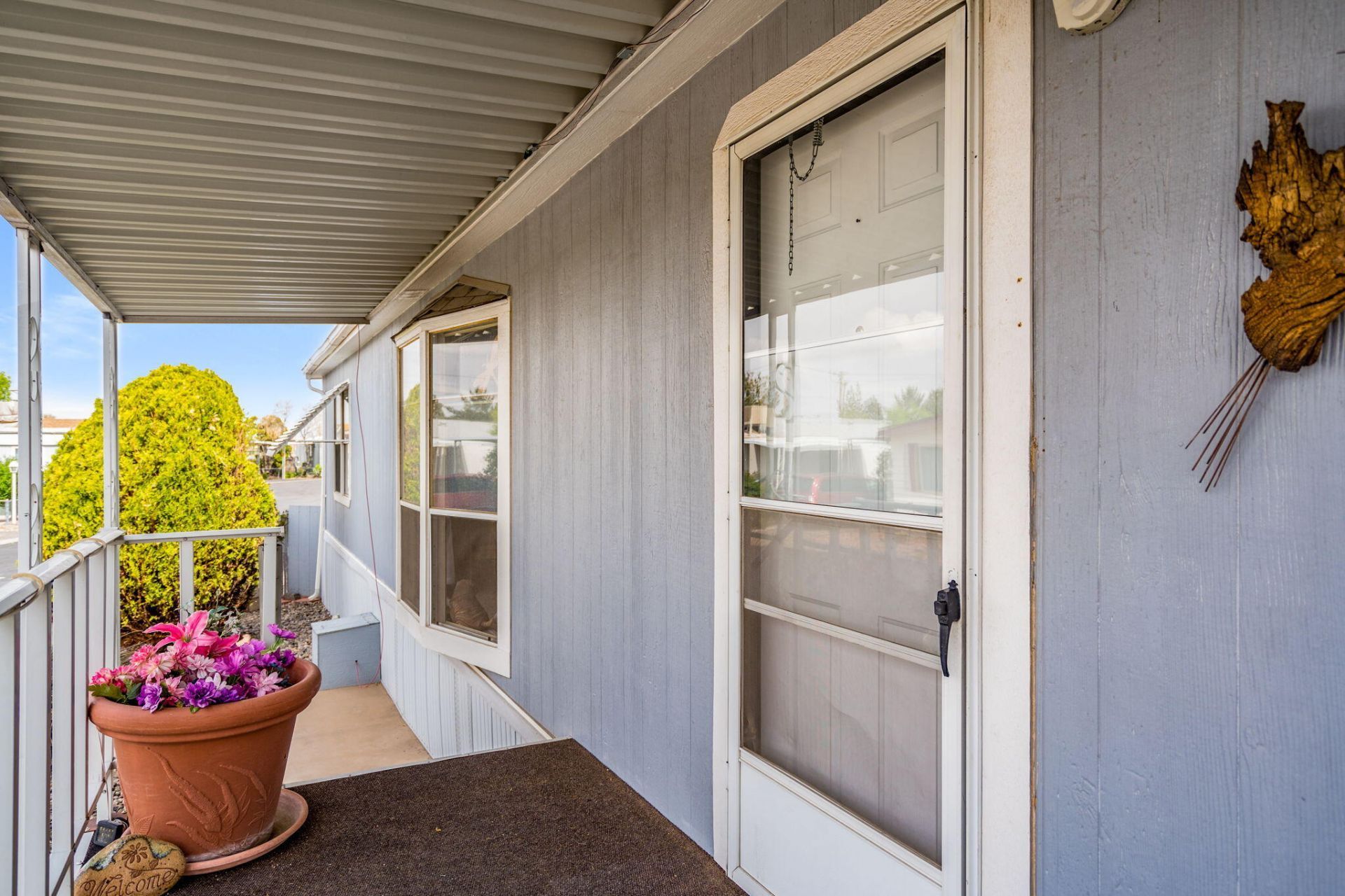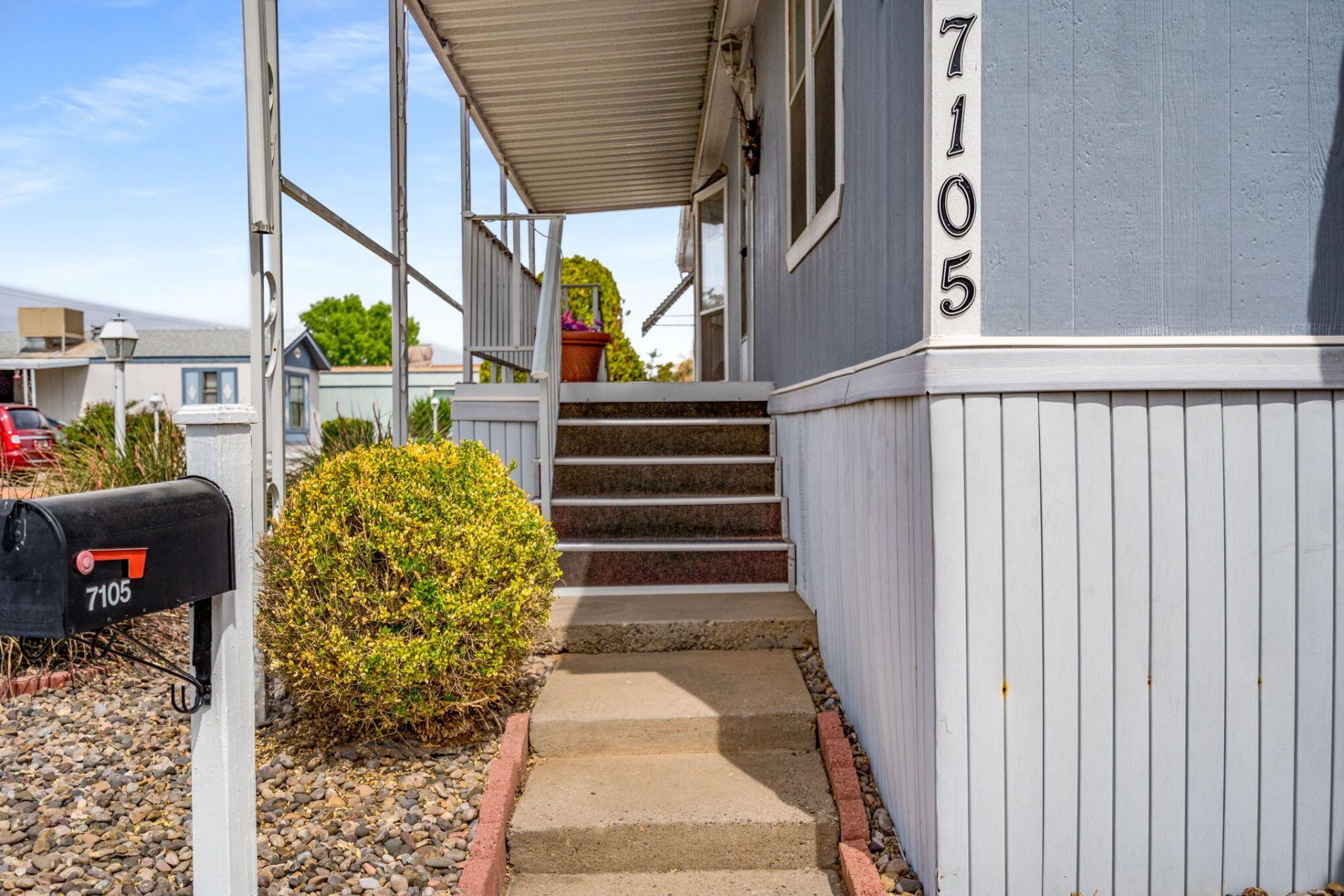 Enjoy this spacious double-wide home in the gated 55+ North Hills Mobile Home Park in NE Albuquerque. This large home features 3 bedrooms and 2 bathrooms, an updated kitchen, and is located on a corner lot. Relax on the front or back deck. Two sheds provide plenty of outdoor storage. Enjoy the convenience of a central location close to shopping, dining, recreation, and healthcare. The community boasts amenities like a clubhouse, swimming pool, and tennis courts - ideal for socializing and enjoying the North Hills lifestyle.